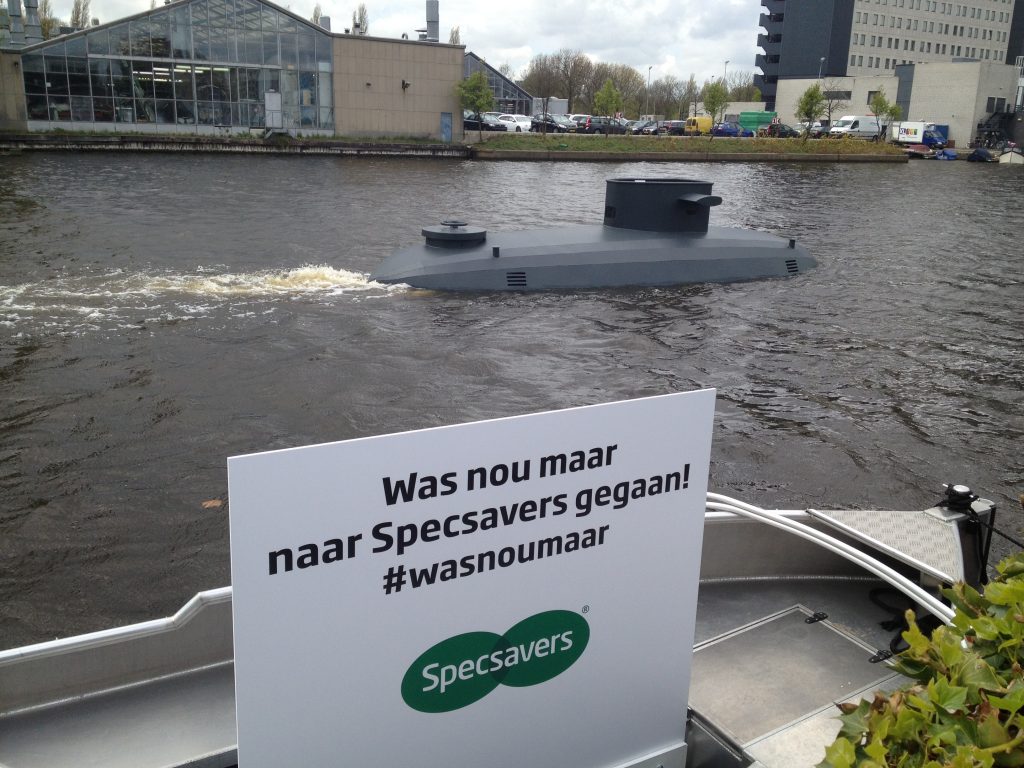 Voorbijgangers keken vreemd op toen er in de grachten van Amsterdam vanuit het niets een onderzeeër opdook. De gedesoriënteerde kapitein was compleet verdwaald, omdat hij de kaart niet goed kon lezen. De “guerrilla” actie was een initiatief van Specsavers en maakt onderdeel uit van de nieuwe reclamecampagne ‘Was nou maar naar Specsavers gegaan’. In de commercials is te zien hoe de hoofdpersonen in de meest hachelijke situaties terechtkomen, omdat zij geen bril of lenzen dragen en dus iets niet goed zien. Zoals een agent die nalaat een verdachte aan te houden terwijl deze persoon recht voor zijn neus staat. Na het grote succes van de campagne in Engeland, Australië, Nieuw Zeeland en Denemarken zijn de commercials nu ook in Nederland te zien.