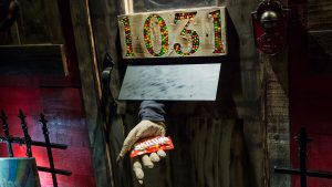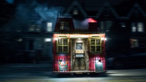 This Halloween-themed house has been tooling around Toronto, making stops to open a slot in its front door and dispense Skittles from zombie hands whenever someone rings the bell.